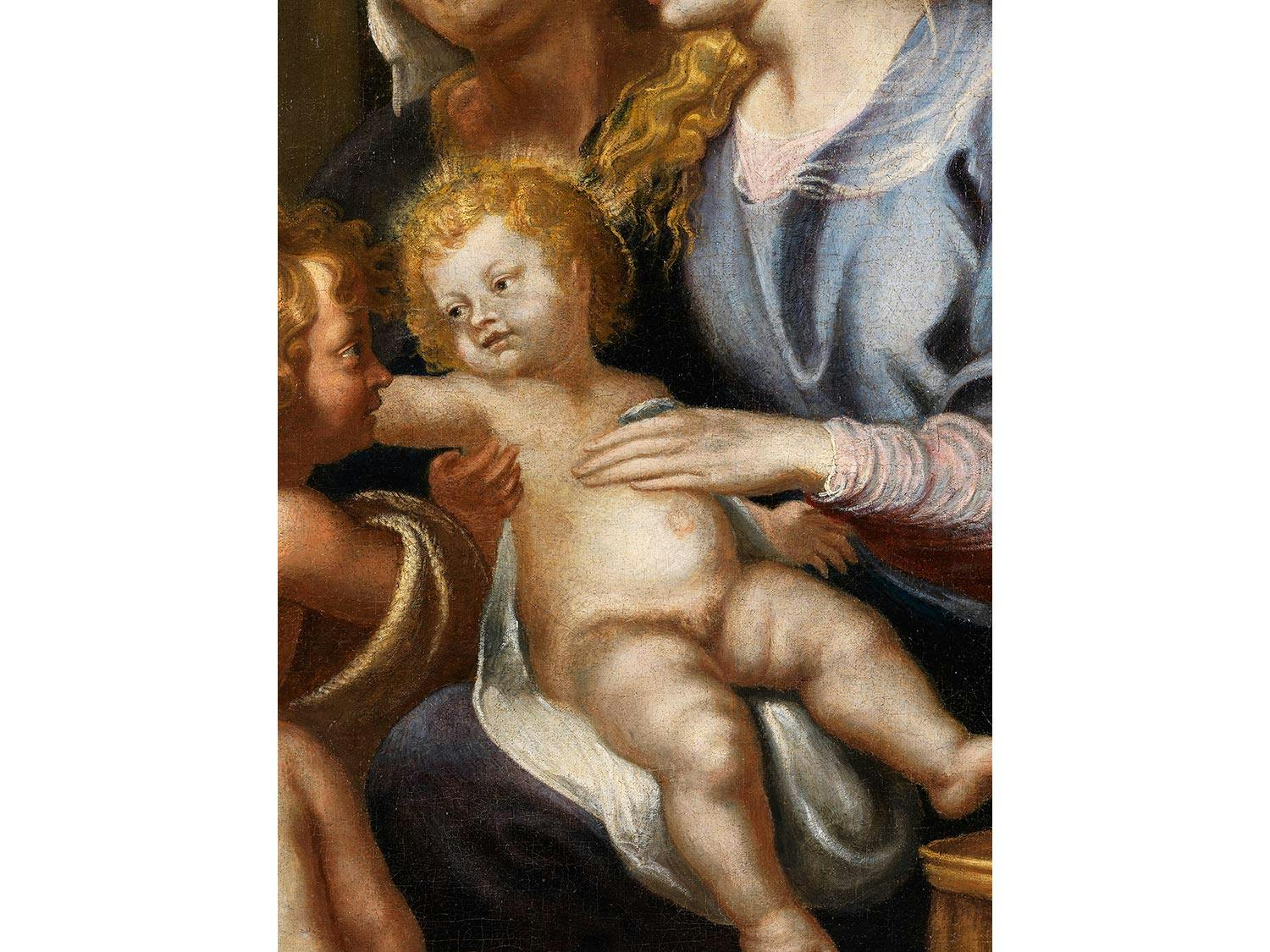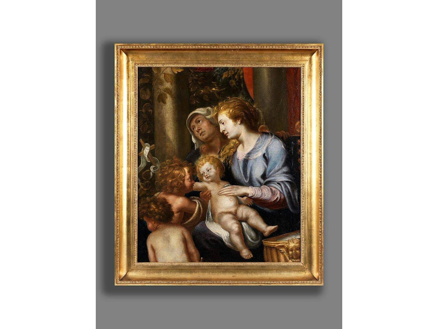 MARIA MIT DEM JESUSKNABEN, DER HEILIGEN ANNA UND JOHANNES DEM TÄUFERÖl auf Leinwand. Doubliert.