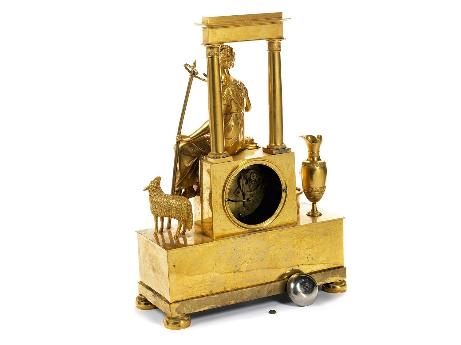 Funktion: Schlossscheibenschlagwerk auf Glocke zur halben und zur vollen Stunde. Aufzugslöchlein über der IIII und VIII, Breguetzeiger (besch.) für Stunden und Minuten. Nicht auf Funktionsfähigkeit getestet. Ein Schlüssel und ein Pendel vorhanden. (1410386) (13)