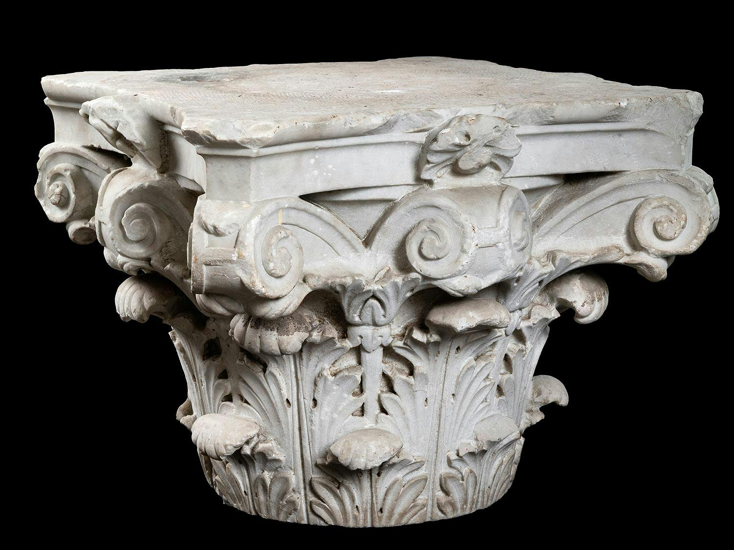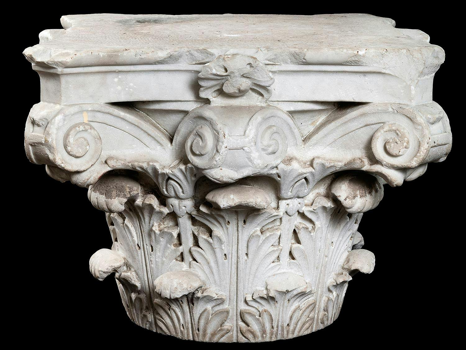 In Carraramarmor gefertigtes Kapitell in Zusammenwirkung eines korinthischen Kapitells mit ionischem Abschluss als eigene Variante des römischen Stils. Besch. (1410888) (13)