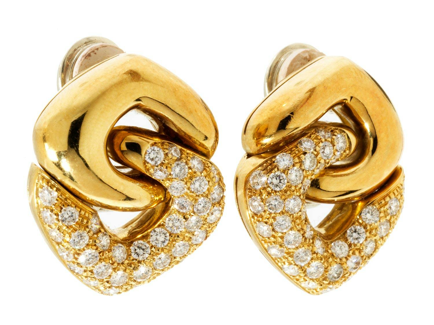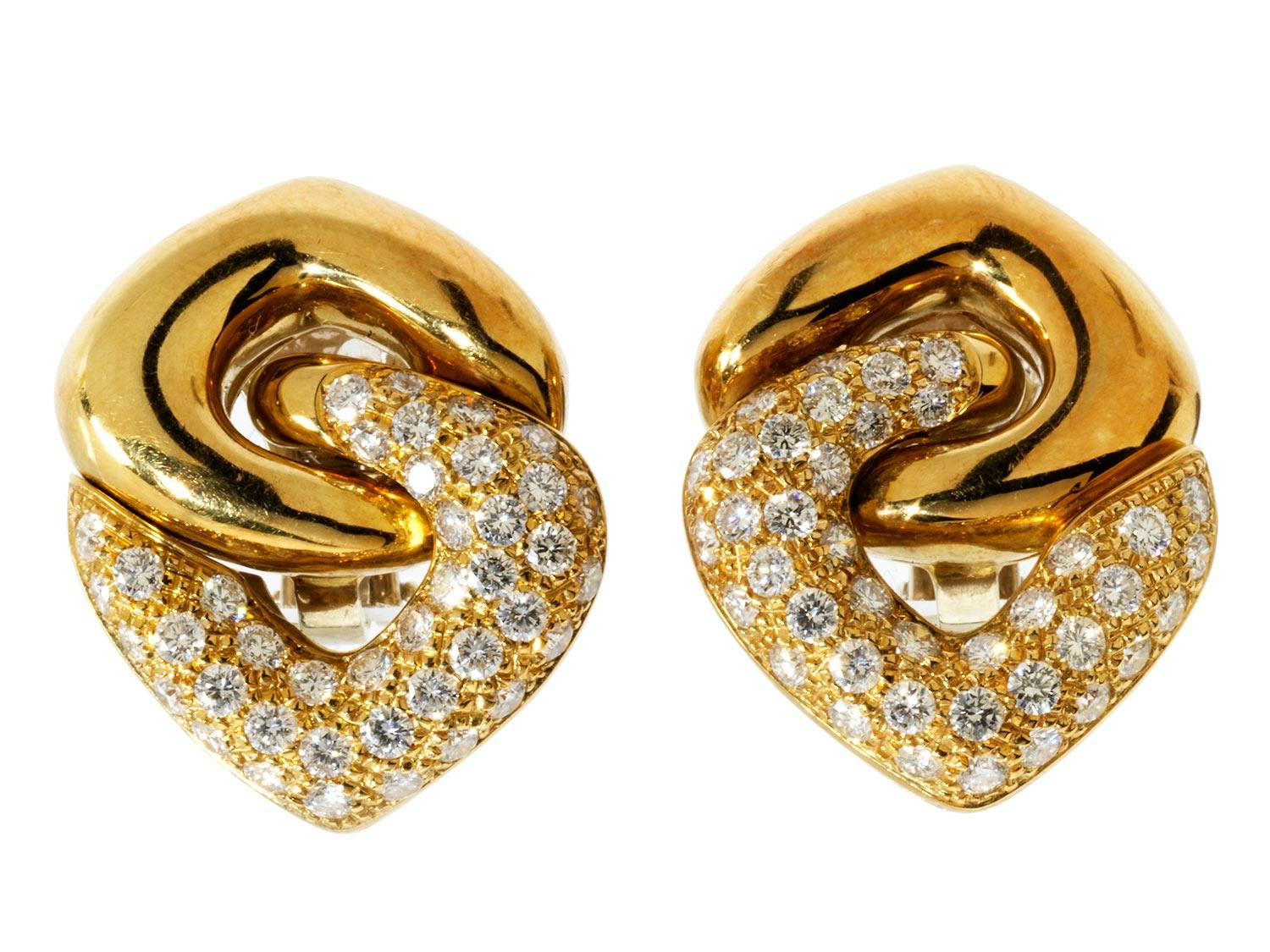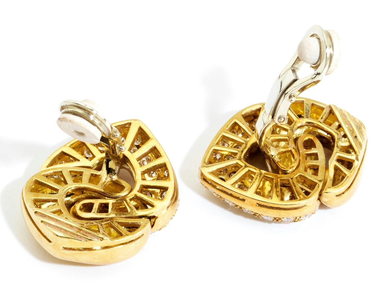 Elegante, leicht beweglich gearbeitete Ohrclipse in Form zweier verschlungener Herzen, pavé besetzt mit feinen Brillanten, zus. ca. 2,3 ct G/VS. Clipbrisur ohne Stift.(1410874) (16)