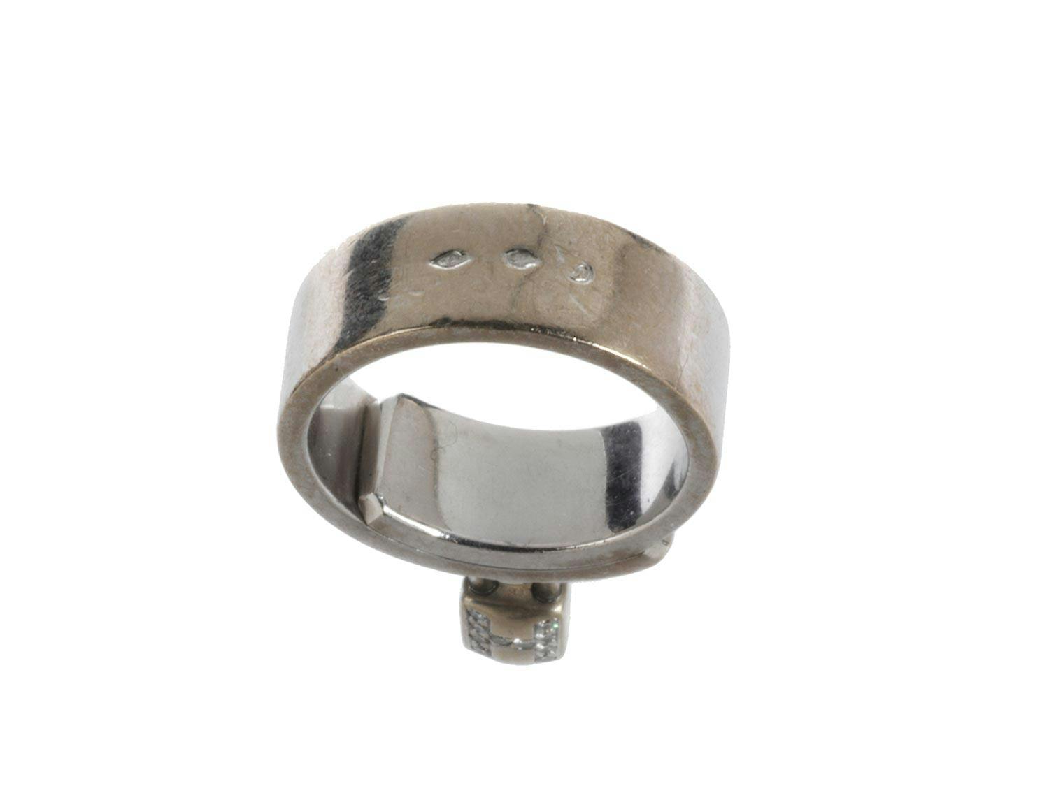 Weißgoldener Bandring mit angehängtem Vorhängeschlösschen besetzt mit kleinen Brillanten, zus. ca. 0,1 ct. (1441845) (16)