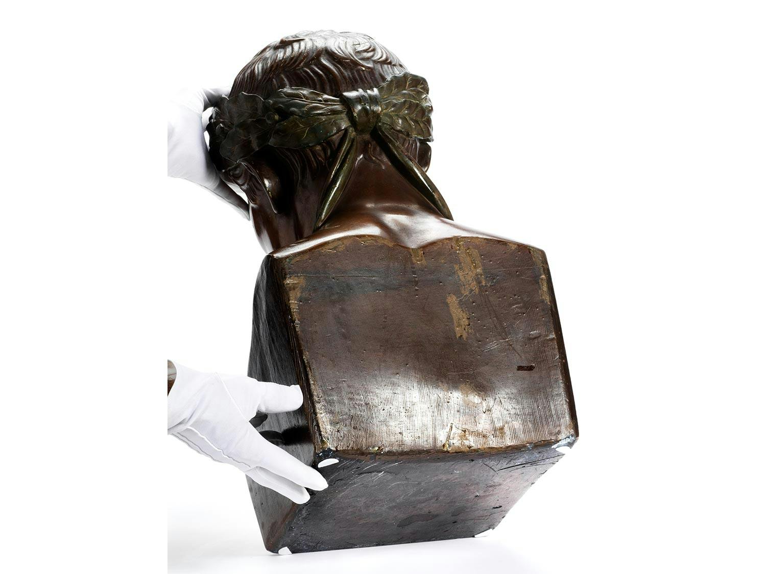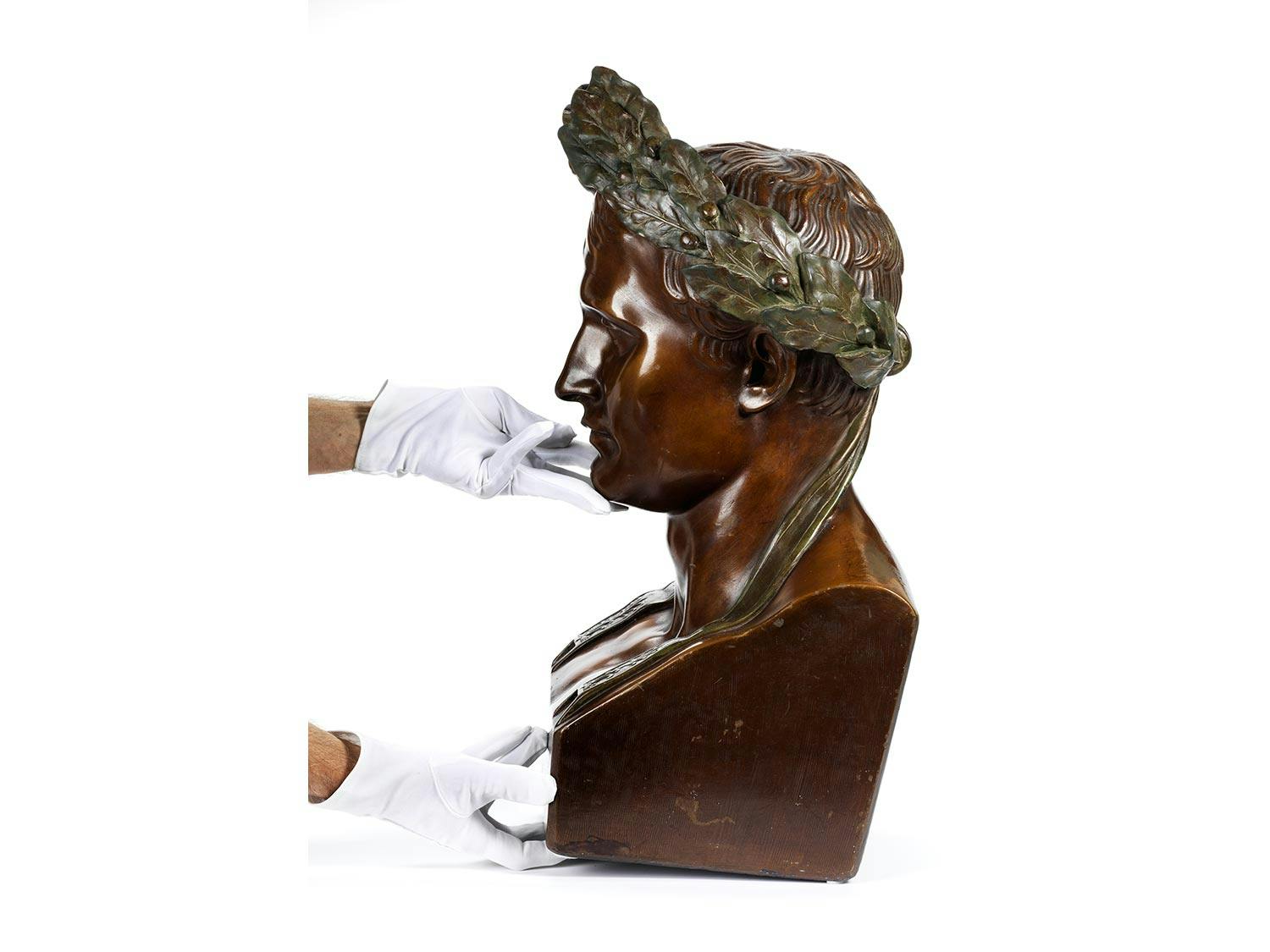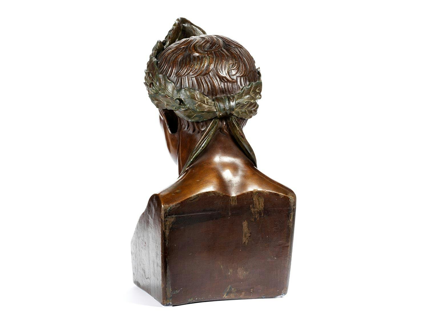 Galvanoplastik in Kupfer, mit polierter Oberfläche, am Boden geschlossen. In Überlebensgröße, mit Lorbeerkranz, nach dem Werk von 1805, von Lorenzo Bartolini, François Rémond und François Damerat, 1805, das sich unter Inv.Nr. MR 3327 im Pariser Louvre befindet.