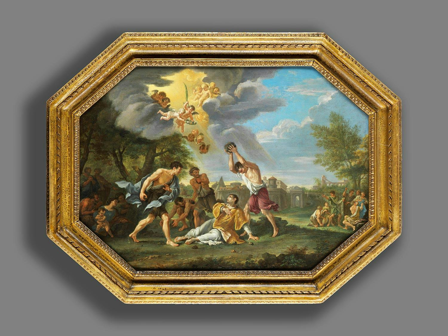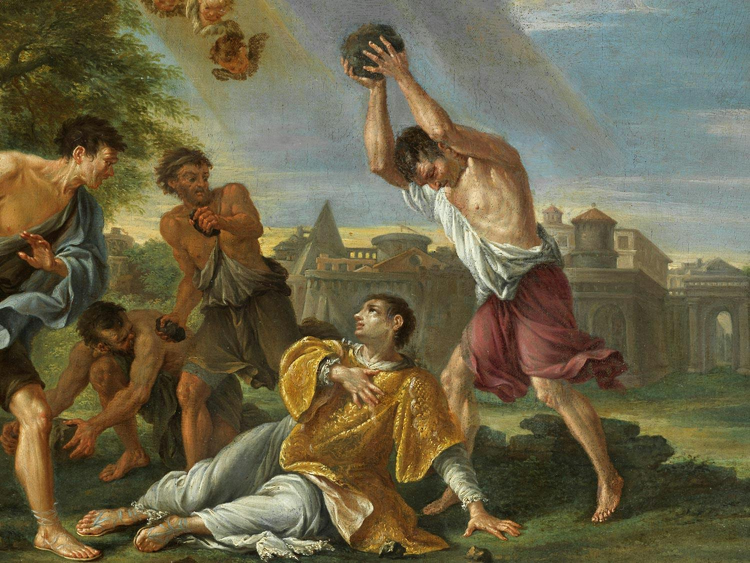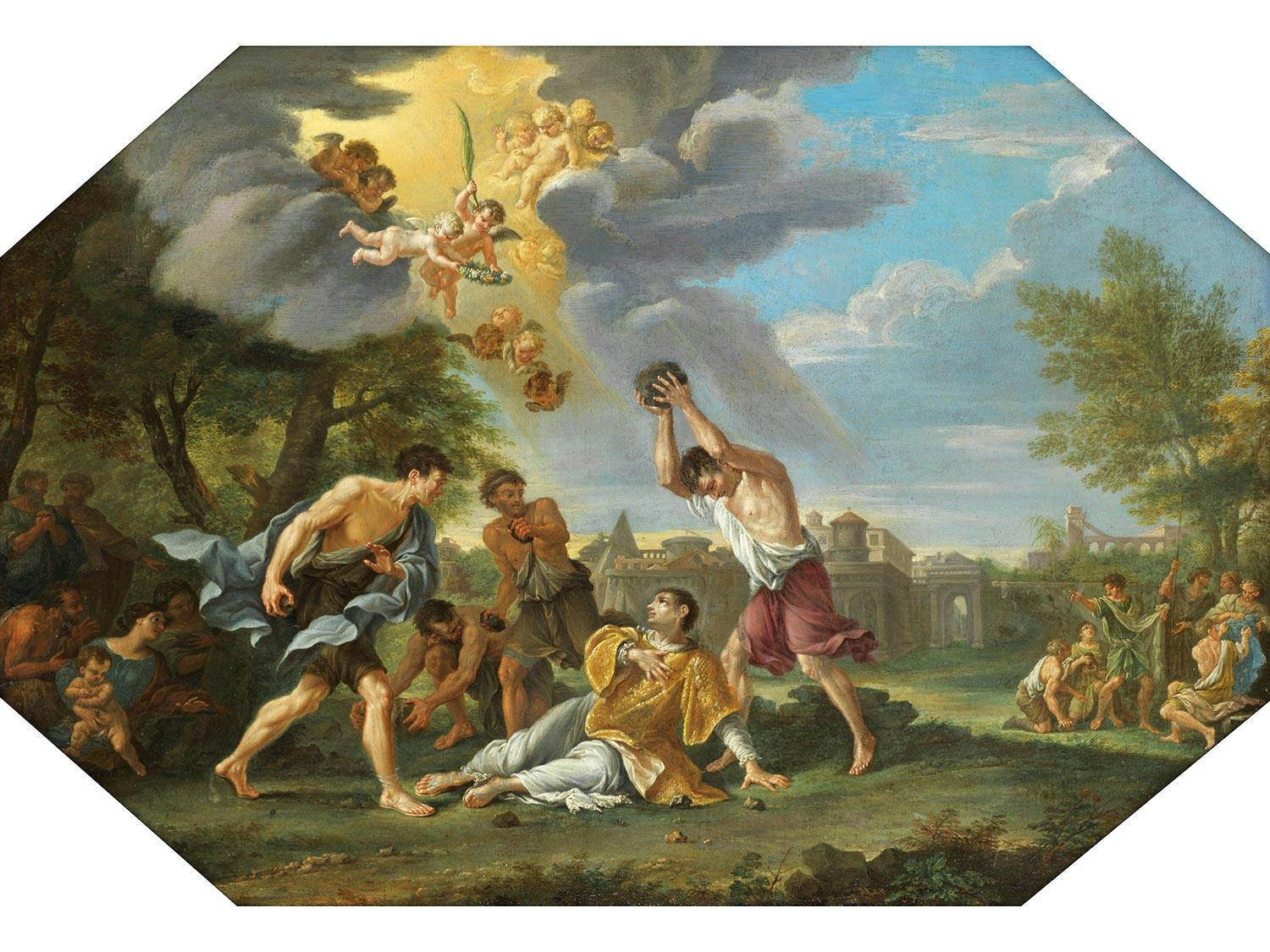 DIE STEINIGUNG DES HEILIGEN STEPHANUSÖl auf Leinwand. Doubliert.