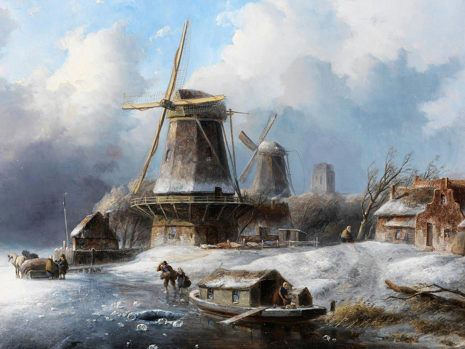 Der Maler war Schüler von Jan Willem Pienemann (1779 – 1853) und wurde 1845 Mitglied der Königlichen Akademie in Amsterdam. Er erlangte große Bekanntheit durch seine Winterlandschaften, zu denen auch das vorliegende Gemälde zählt. (1451324) (13)