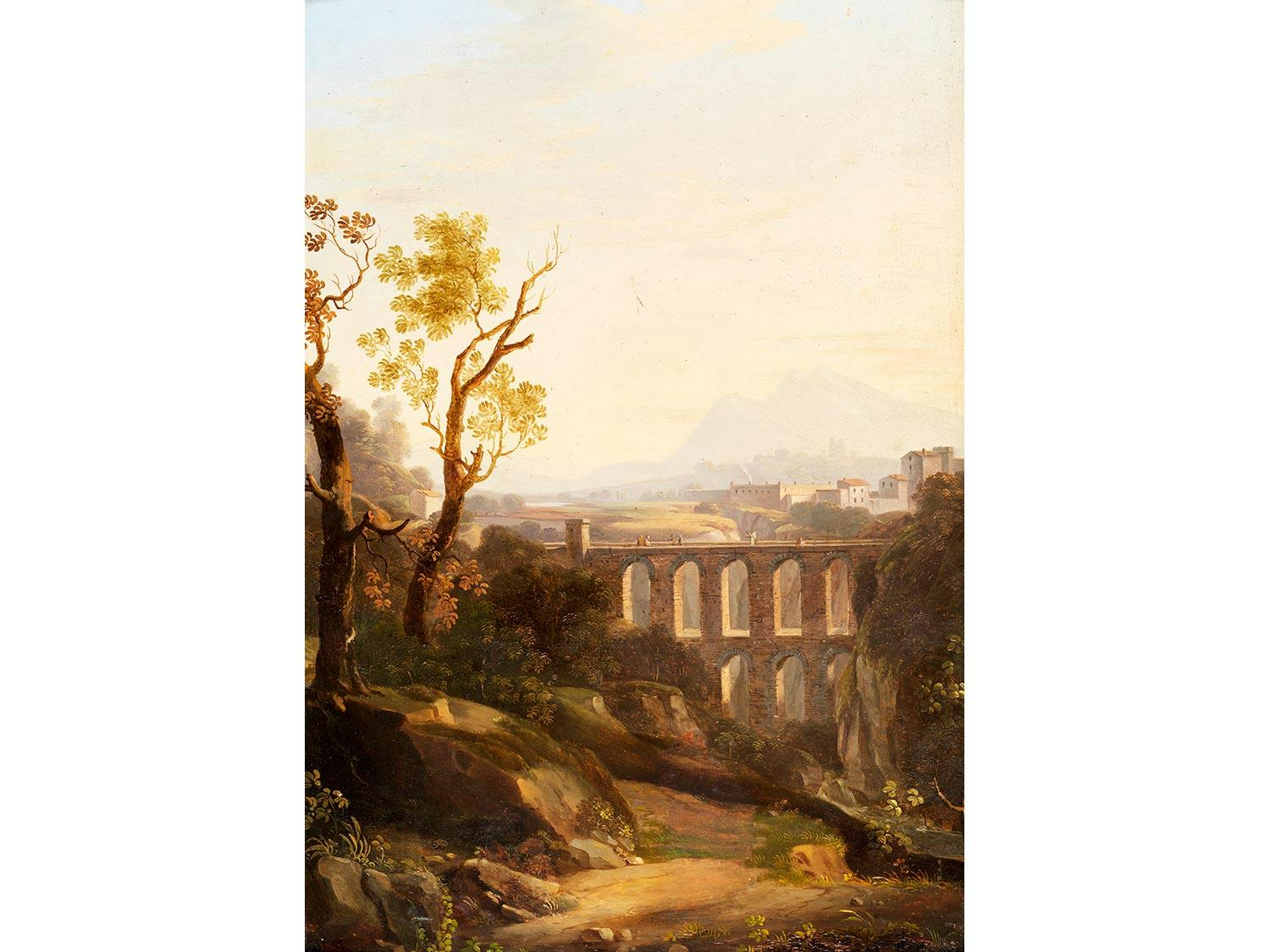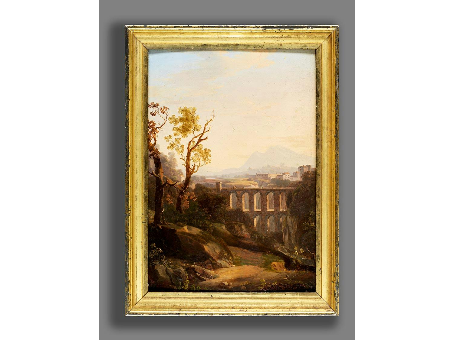 ITALIENISCHE LANDSCHAFT MIT BLICK AUF DIE PONTE CLEMENTINOÖl auf Holz.