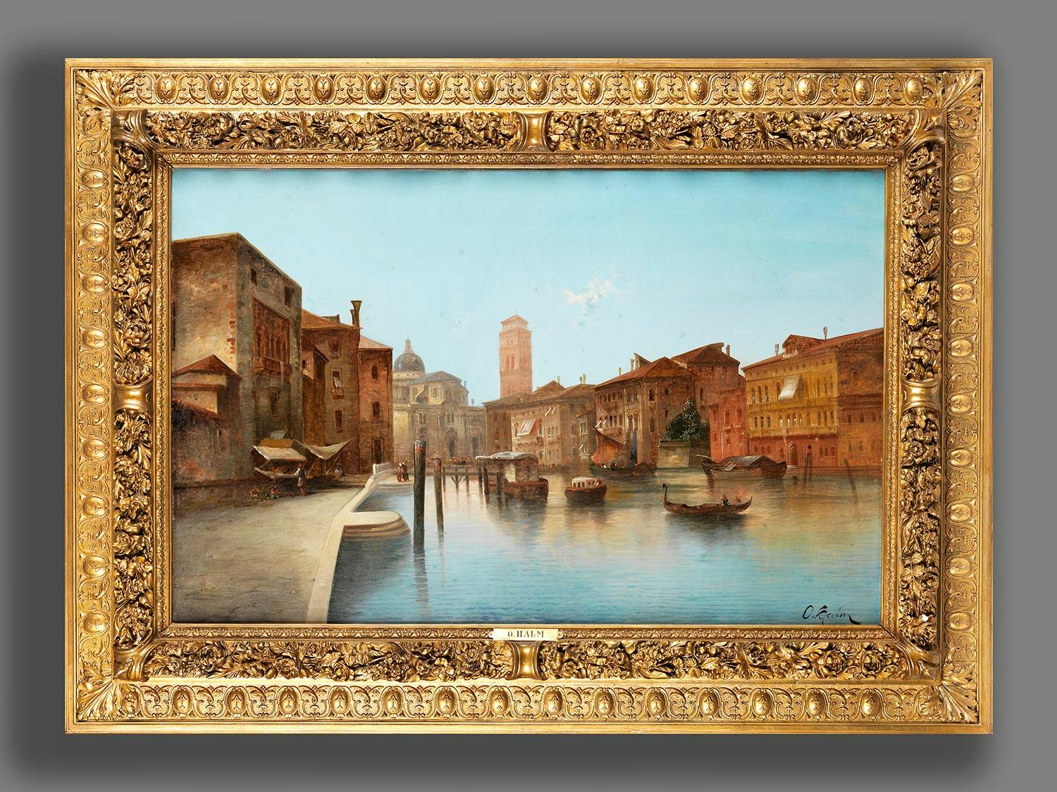 Rechts unten signiert mit Pseudonym „O. Halm" sowie auf einem Rahmenschild mit Namensvermerk.