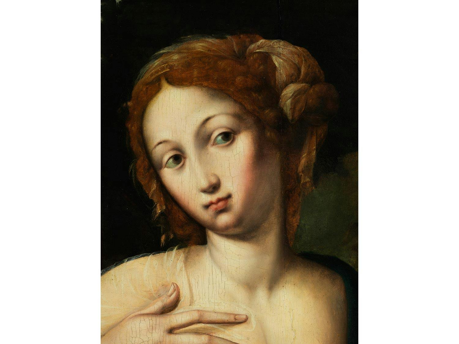 The painting is described, documented and illustrated in the catalogue: Stanze Bolognesi – La Collezione Lauro (see Literature). The catalogue text notes that the painting offered in this lot is a better quality variation of a painting of his hand held at the Zuttere Collection in Antwerp. (see J. Bousquet, La Peinture Manièriste, Neuchâtel 1964, p. 326, ill. p. 184). Furthermore, examples for stylistic comparison are listed such as The Holy Family with the infant St John, St Elizabeth and St Anne held at the Statens Museum for Kunst in Copenhagen.
