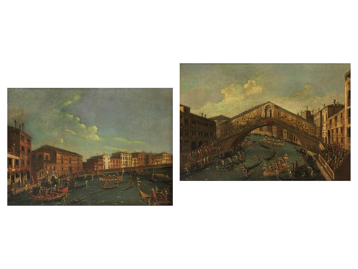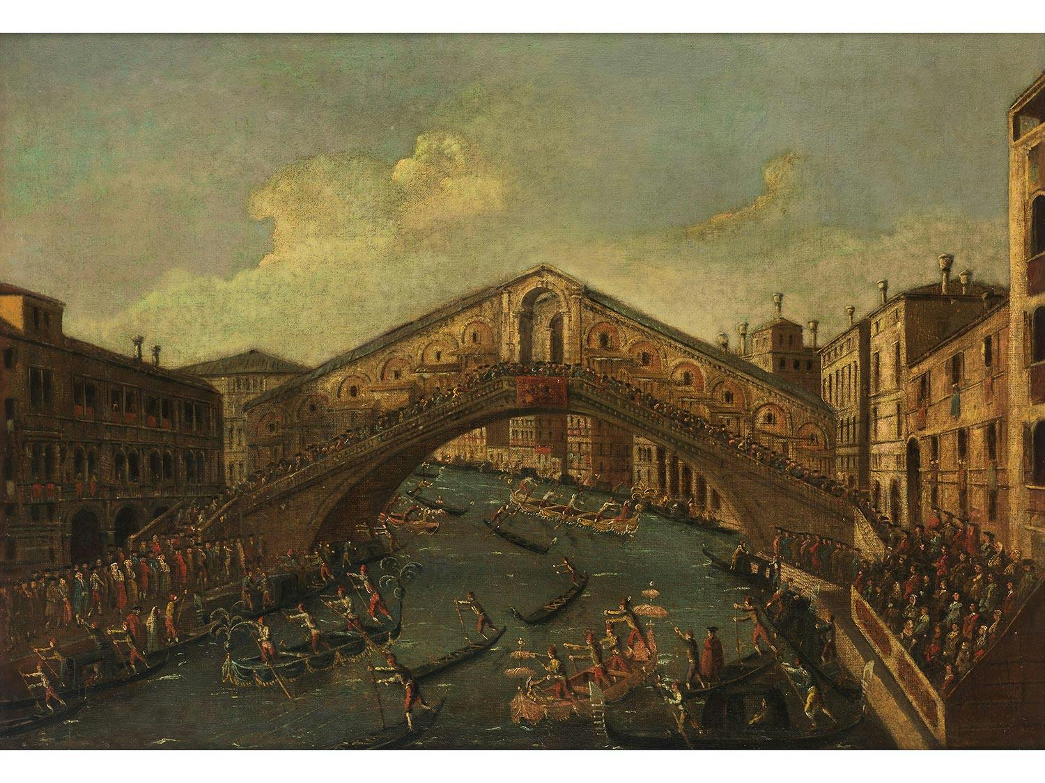 sowieREGATTA AUF DEM CANAL GRANDE MIT DER RIALTOBRÜCKE Öl auf Leinwand. Doubliert.