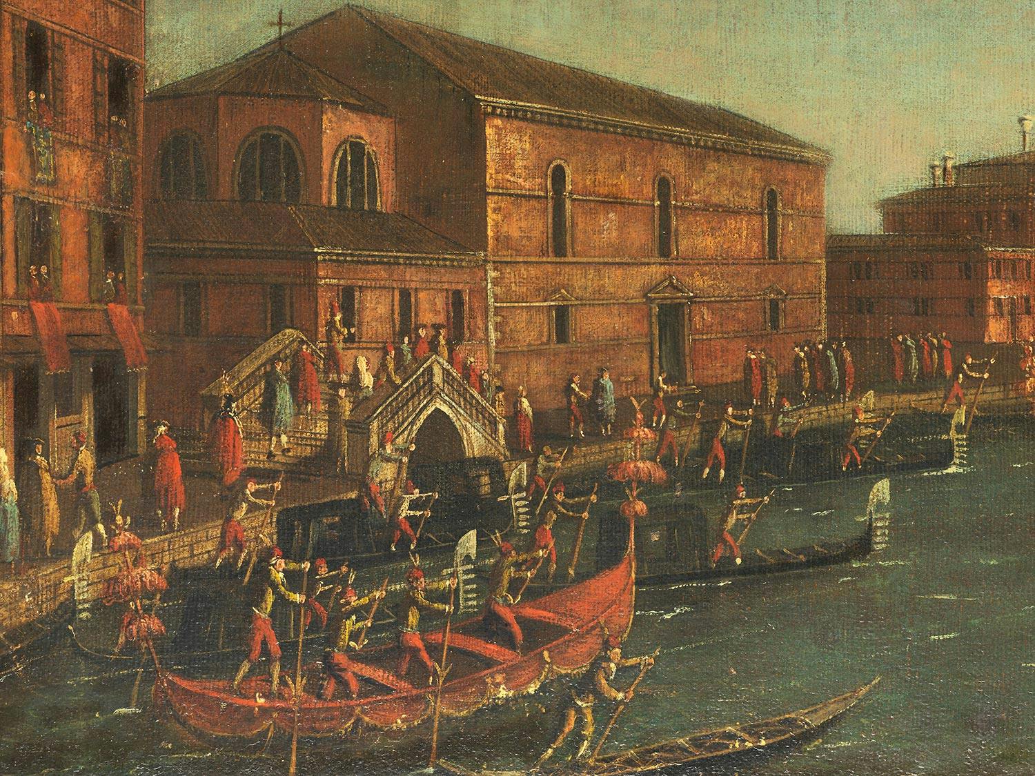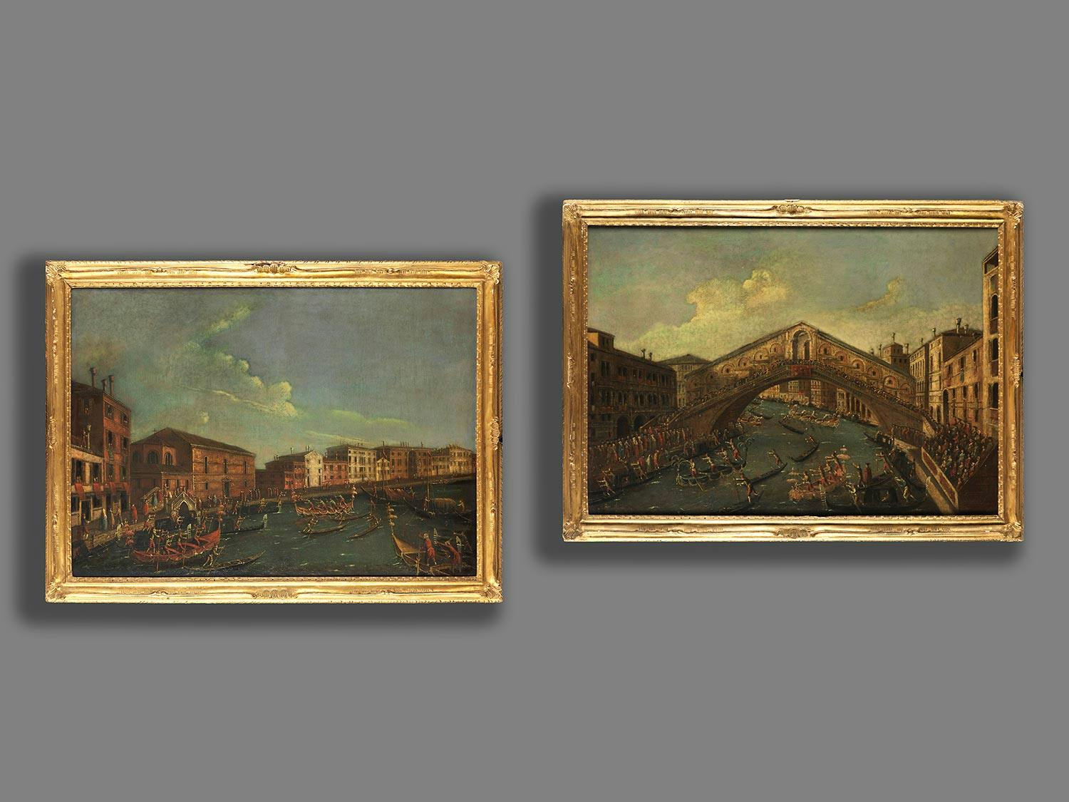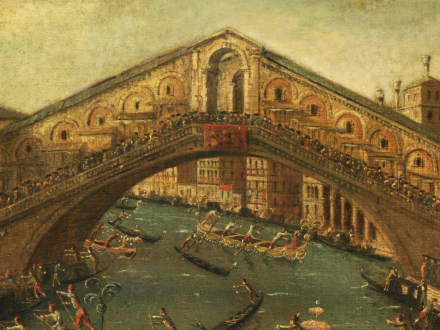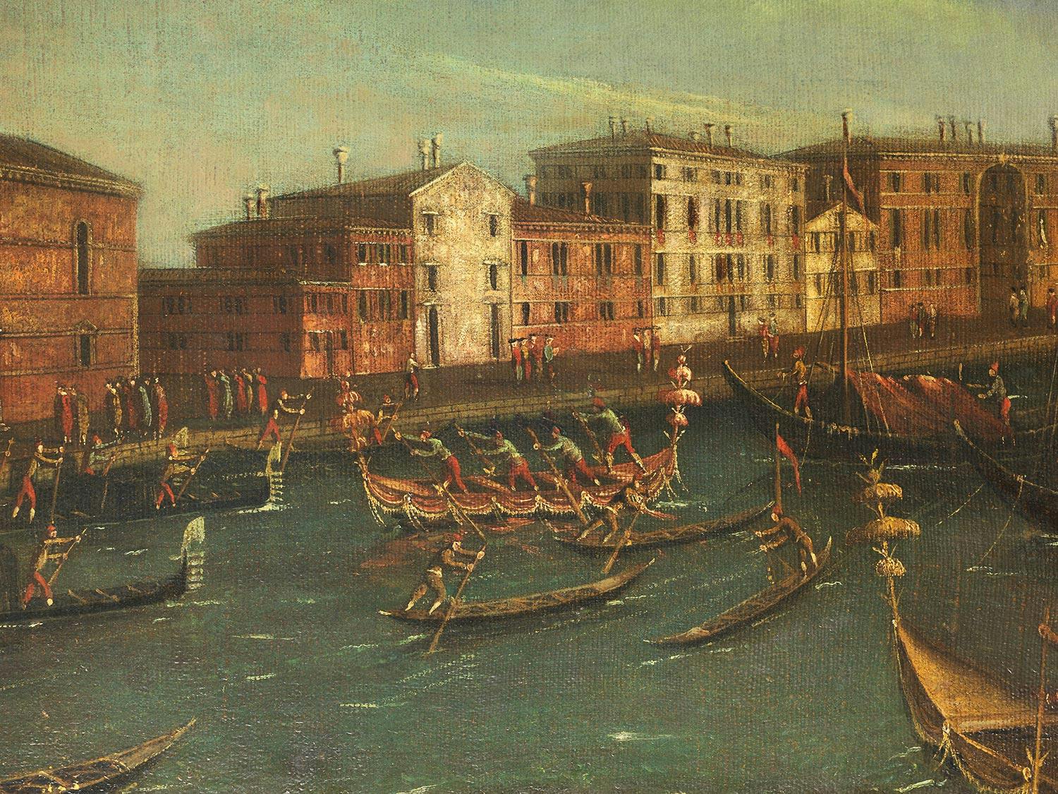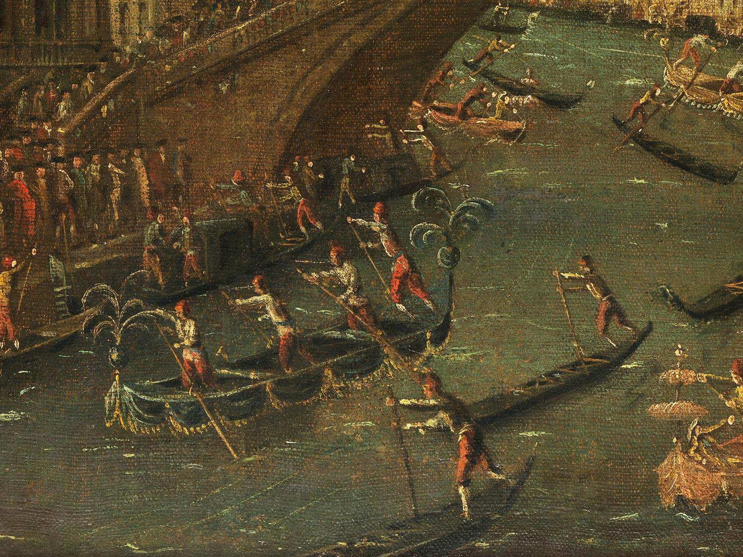 Auch in vorliegenden Gemälden wird ein Festereignis dokumentiert, mit der Pracht der einheitlich gekleideten Gondolieri, der Schaulustigen in den Fenstern, auf der Tribüne und der Menschenmenge auf der Brücke. 67 Werke des Malers beherbergt die Pinacoteca Querini Stampalia. Einige seiner Bilder hat Andrea Querini für sein Wochenenddomizil in Santi Quaranta in Treviso bestellt, weitere stammen aus der Sammlung der Familie Giustinian. Anders als viele Veduten, die auf Vorlagestichen beruhen, sind die hier angebotenen Gemälde originäre Bilderfindungen oder Beobachtungen des Künstlers und müssen entsprechend gewürdigt werden.